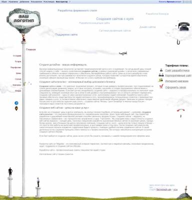 Сайт для студии по созданию сайтов. Лёгкий, светлый шаблон. Слева находится пьедестал на вершине, которого качок держит ваш логотип.